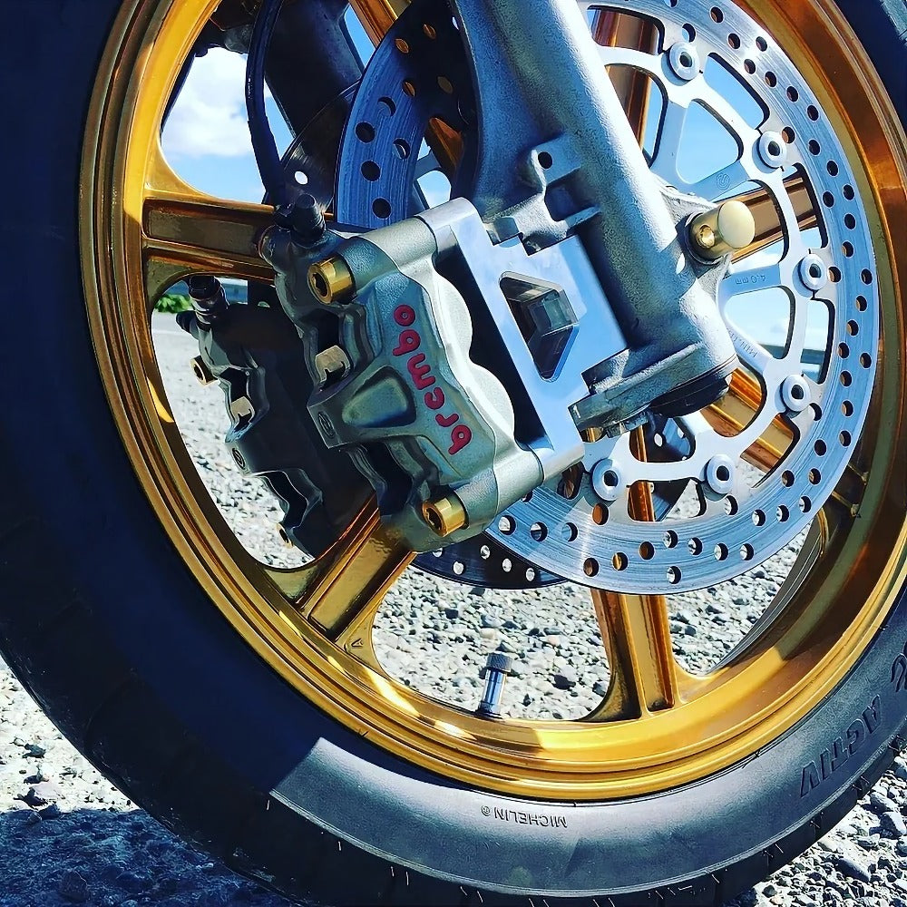 - Brembo radial piston calipers provide the best clearance for spoke wheels. But will require an 18 to 19mm Master Cylinder for dual use.